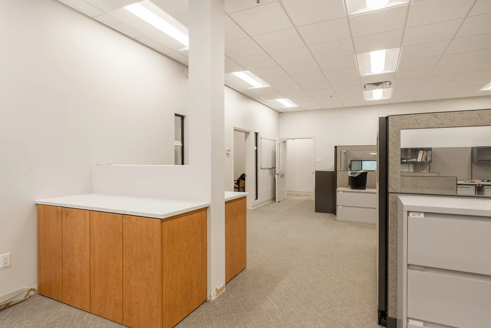 This project involves an interior, primarily cosmetic, renovation of an existing 10,500 SF office space. In the executive office area, closets and unnecessary walls were removed and replaced with glass storefronts to maximize office space and allow more natural light into the area. The demolition phase included removing old carpet, plumbing fixtures, bathroom tile, ceiling tile, and ceiling lights. To enhance the entire space, new acoustical ceiling tiles and bright LED lights were installed. Nearly 4,000 SF of carpet was replaced, and existing carpet was thoroughly steam cleaned. Most bathrooms and kitchenette areas received new porcelain tile.
