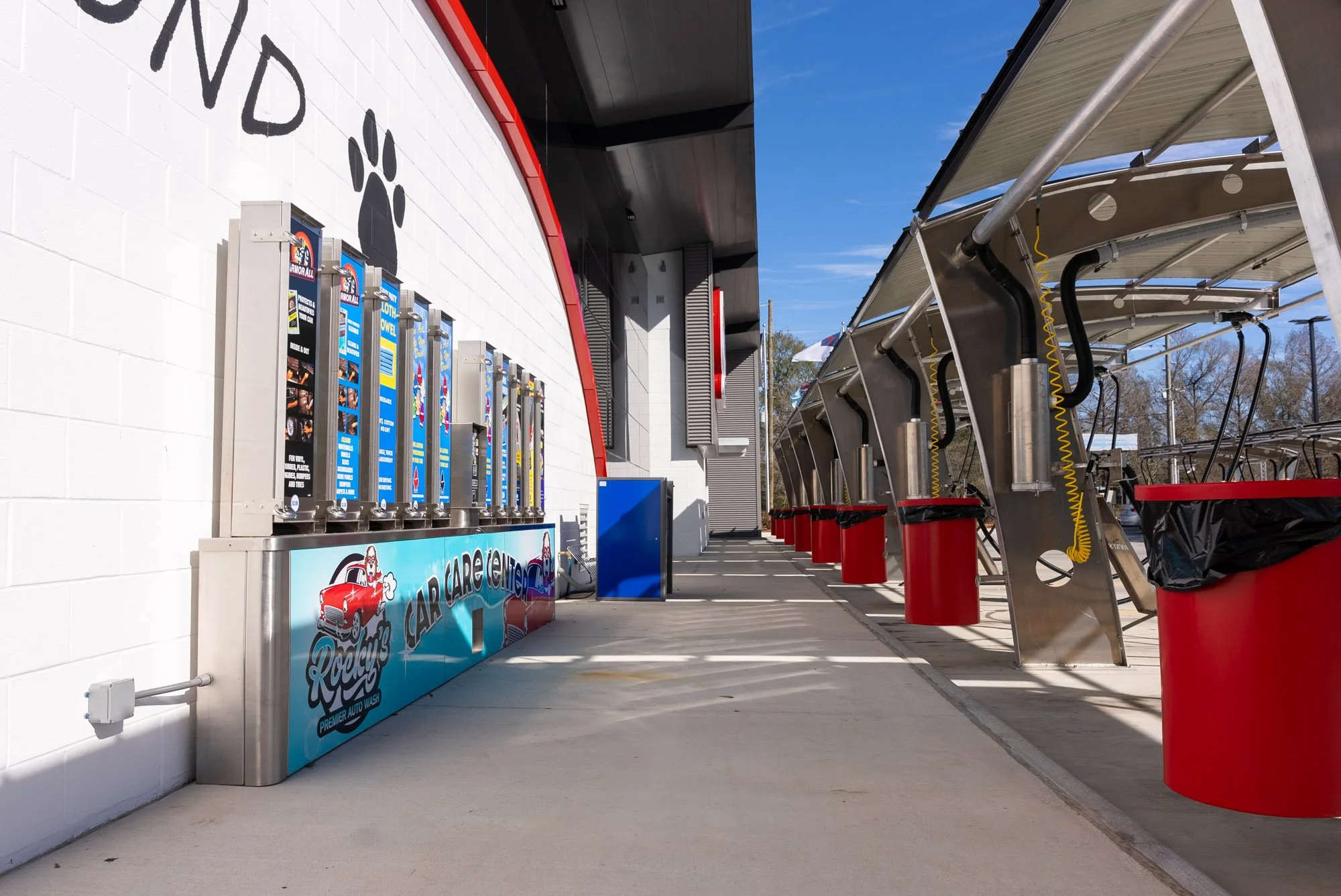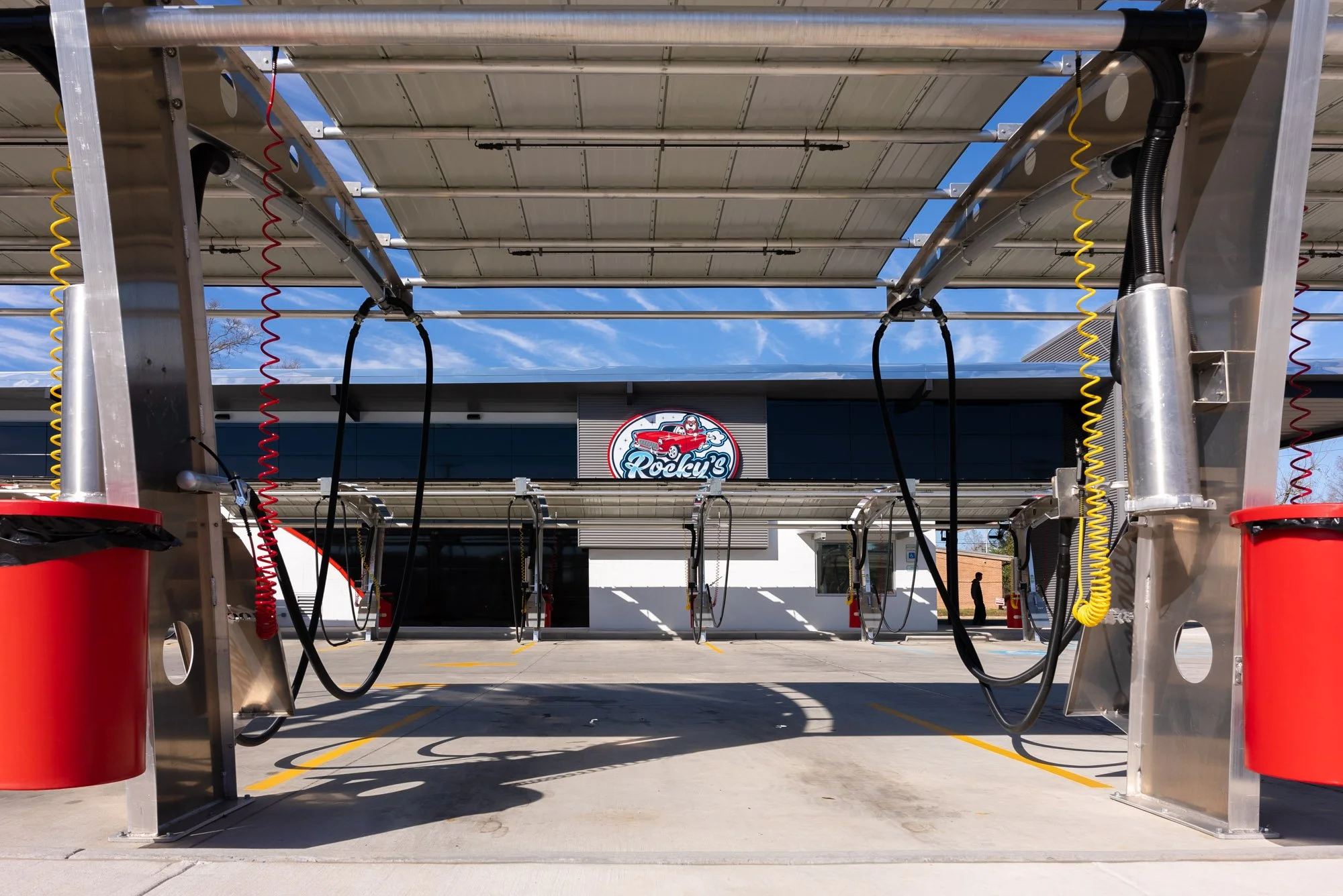 This is the fourth Rocky’s Carwash that Kent has constructed. Our team was responsible for executing a comprehensive sitework package, which included installing underground conduits for the complex car wash systems. The building itself is composed of CMU block walls and wooden roof trusses, featuring painted CMU, metal wall panels, and ACM wall panels on the exterior. The roof boasts a standing seam metal design with a chrome fascia. Additionally, the carwash incorporates a unique architectural blade wall made of structural steel and metal studs, enclosed with a metal wall panel.