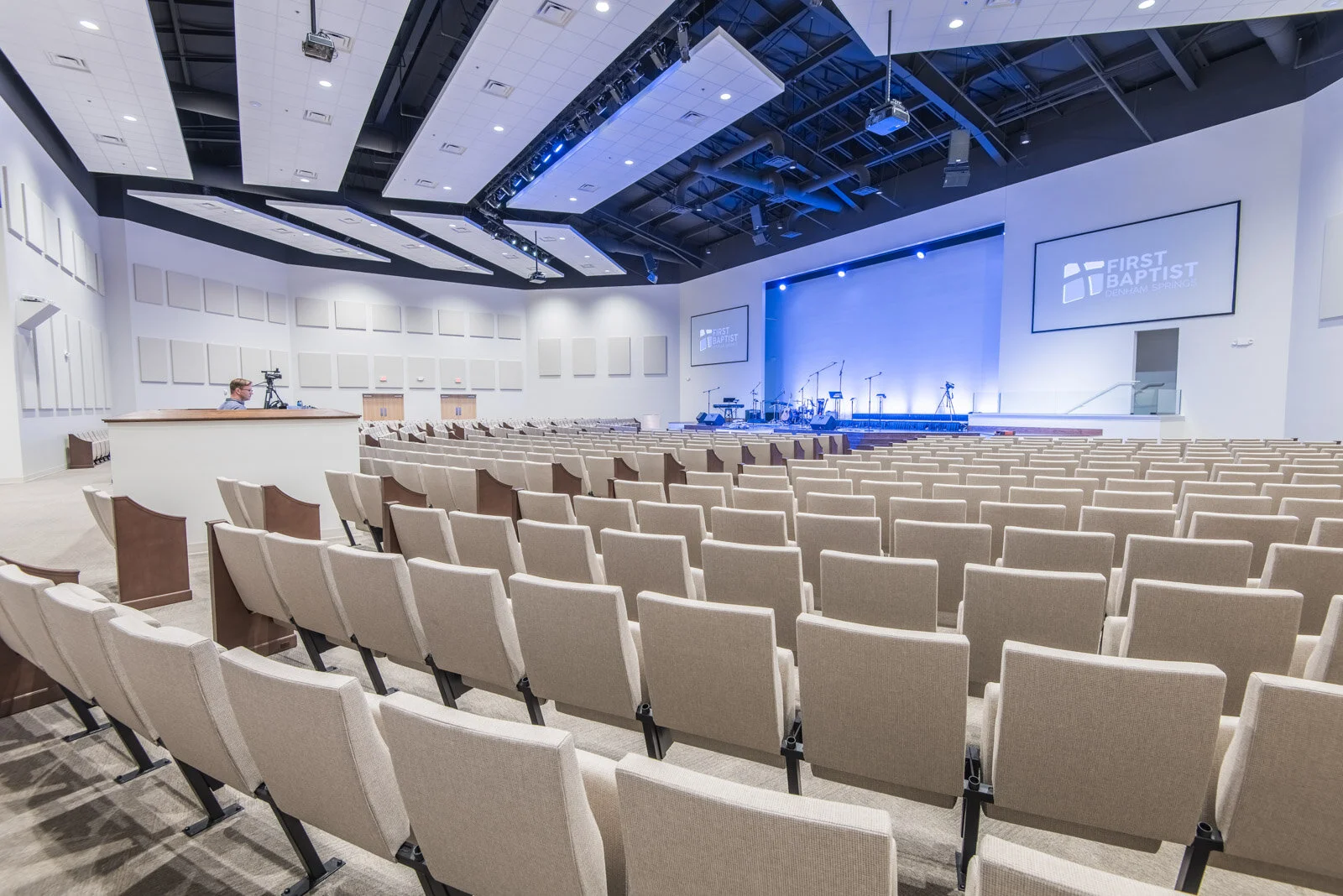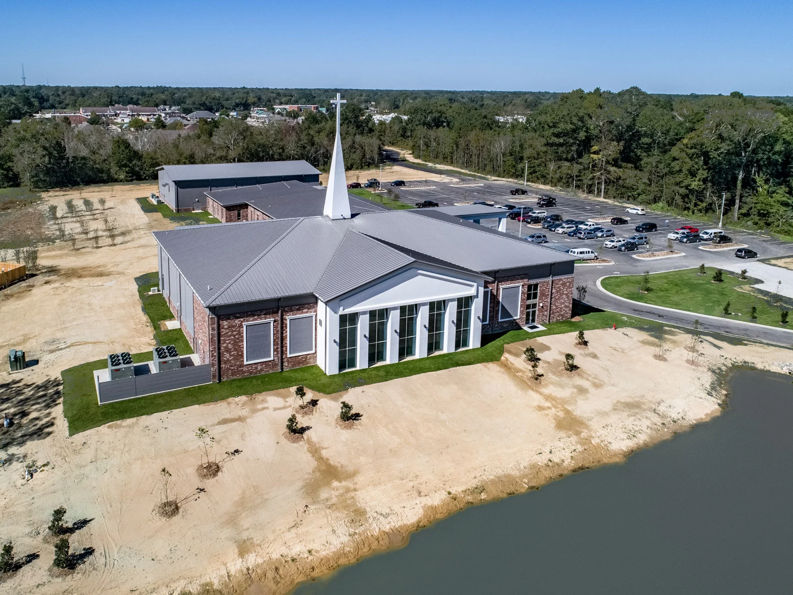 Kent Design Build developed a 44 acre site in Denham Springs, LA for FBC. The site is 44,000 SqFt and includes a Butler pre-engineered structure that houses auditorium, office facilities, and gymnasium. The building features a complete children’s facility (N-6th grade), a full service café, and commercial kitchen. Kent Design Build assisted First Baptist Church with a complete design and campus relocation. After a long road of design, bidding and cost overruns, First Baptist Church contacted Kent Design Build to be their partner of choice.