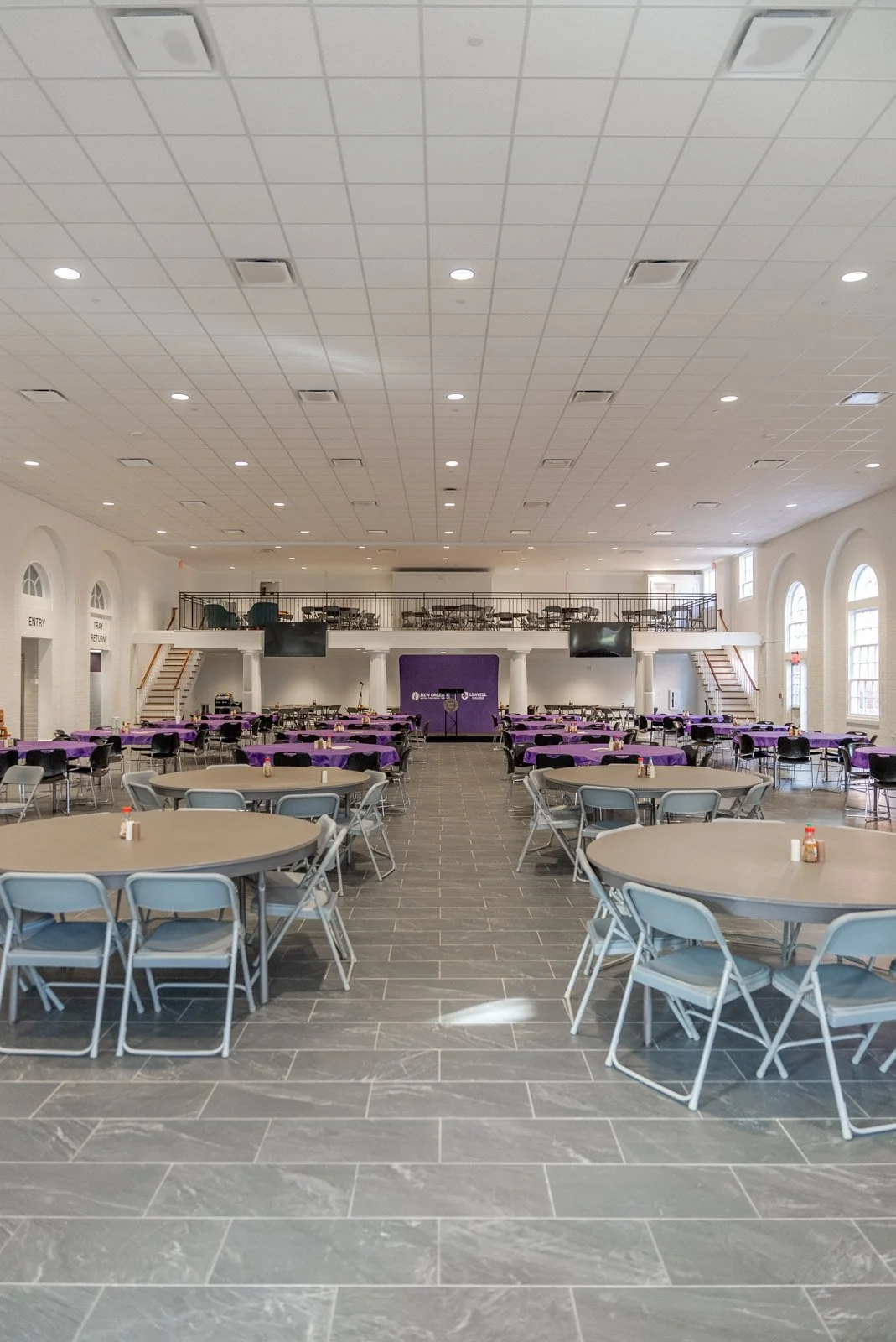 This project encompassed a comprehensive addition and renovation to an existing two-story cafeteria facility. Phase 1 involved the construction of a new kitchen area with dedicated cold and dry storage spaces, a new serving line, and associated support facilities, including the addition of structural walls, slab, and a metal roof to the existing a wind the he existing structure. Phase 2 focused on the adaptive reuse of the former kitchen and ancillary spaces, transforming them into two flexible meeting/small dining rooms and new men's and women's restroom facilities. Further enhancements included upgrading the existing dining room with new finishes from floor to ceiling, and the conversion of the second-level space into a mezzanine, expanding the dining and meeting capacity.