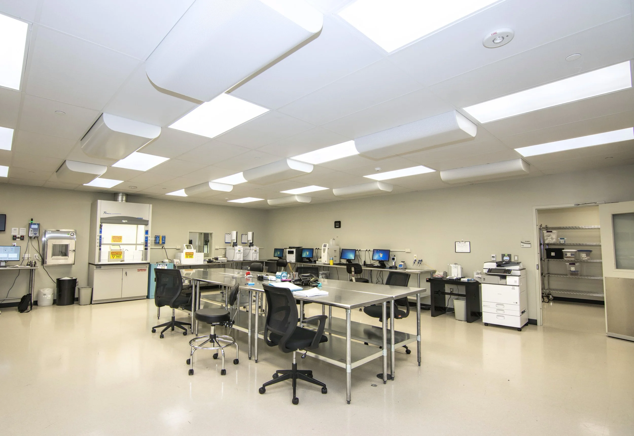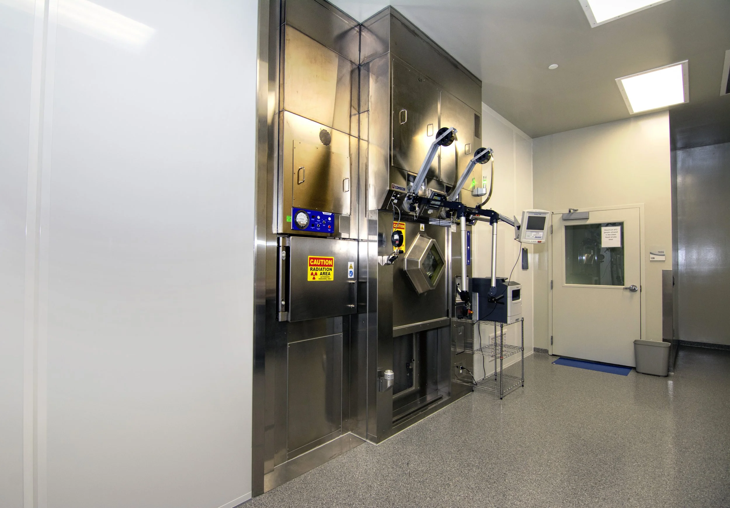 An existing warehouse space was transformed into a hazardous sterile pharmaceutical space and support offices. The addition of a new concrete vault, a pre-engineered building, and an ACSI cyclotron enabled Ochsner Medical Center to produce and manage isotopes critical for cardiac and cancer diagnostic imaging. The construction incorporated metal stud framing, a clean room panel system and ceilings, redundant HVAC systems, chilled water, high voltage DC equipment, and upgrades to existing high voltage AC systems. Additional features included secured access and cleanroom finishes. The vault walls and ceiling were constructed with a 6-foot-thick mass concrete assembly and non-ferrous reinforcement to provide radiation shielding essential for staff safety.