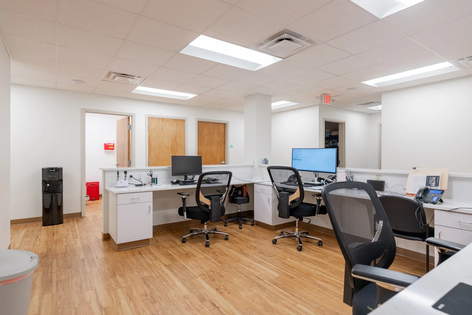 This project involves the renovation of an existing 3,650 SF building with stucco over CMU exterior walls, an exposed fastener metal roof, and a wood-framed interior. The updated design incorporates five exam rooms, a lab, an X-ray room, a nurses' station, a reception/lobby area, and an express wellness center for repeat clients. Through our design-assist approach with Zito+Russell Architects, the project was fast-tracked and delivered in just five months, enabling the client to open on schedule and maximize revenue opportunities. The building's facade was stripped of its Hacienda features and given a more modern look. The parking lot was repaired, striped, and completed with new landscape islands.
