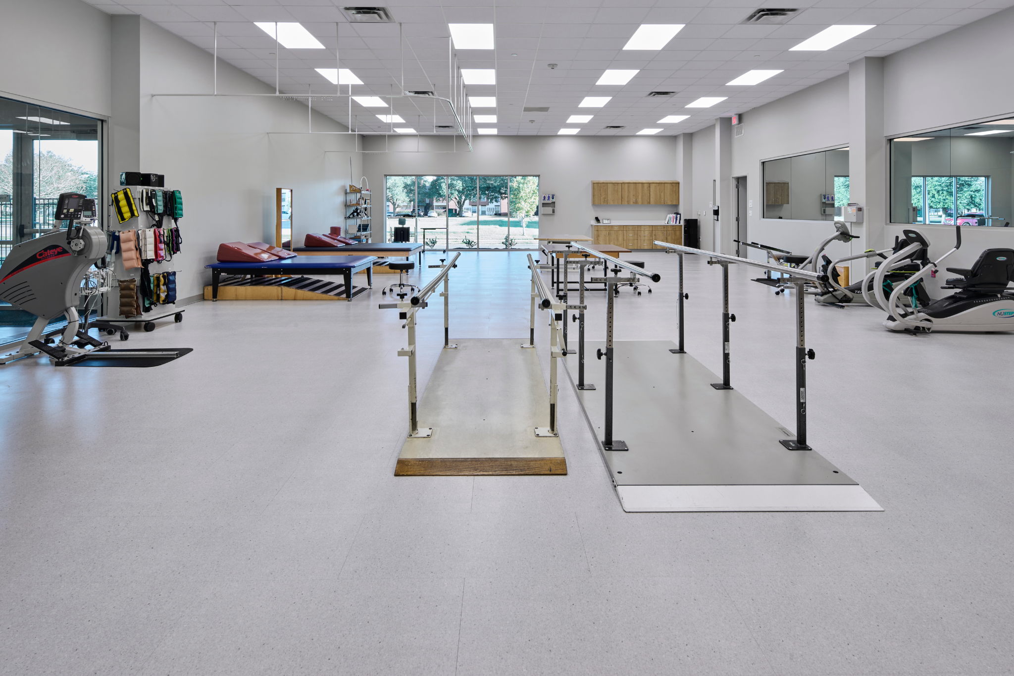 Kent Design Build partnered with AMG to deliver a new 32-patient, freestanding physical rehabilitation hospital in Lafayette, Louisiana. The facility includes private patient rooms, a full-service commercial kitchen, therapy gym, ADL suite, and an outdoor communal courtyard designed to support patient recovery and well-being.