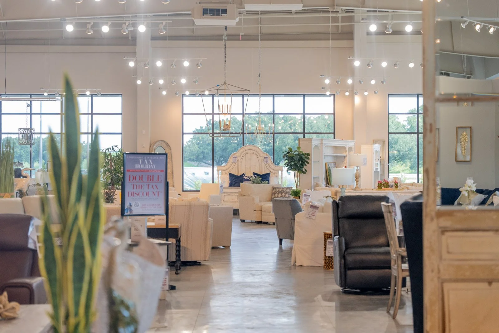When it comes to multi-location projects, consistency is key. For American Factory Direct, it was imperative that certain brand elements and building features were preserved, such as the iconic American Factory Direct signage. For the Gonzales location in particular, we aimed to mimic some of the highlights from our previous location build in Layette, LA. This meant translating the square-footage and capacity of the Layette location into the new structure, allowing the Comeaux’s to showoff their impressive selection with ample room for customers to stroll from section to section.
