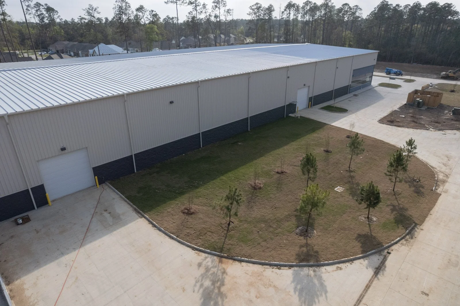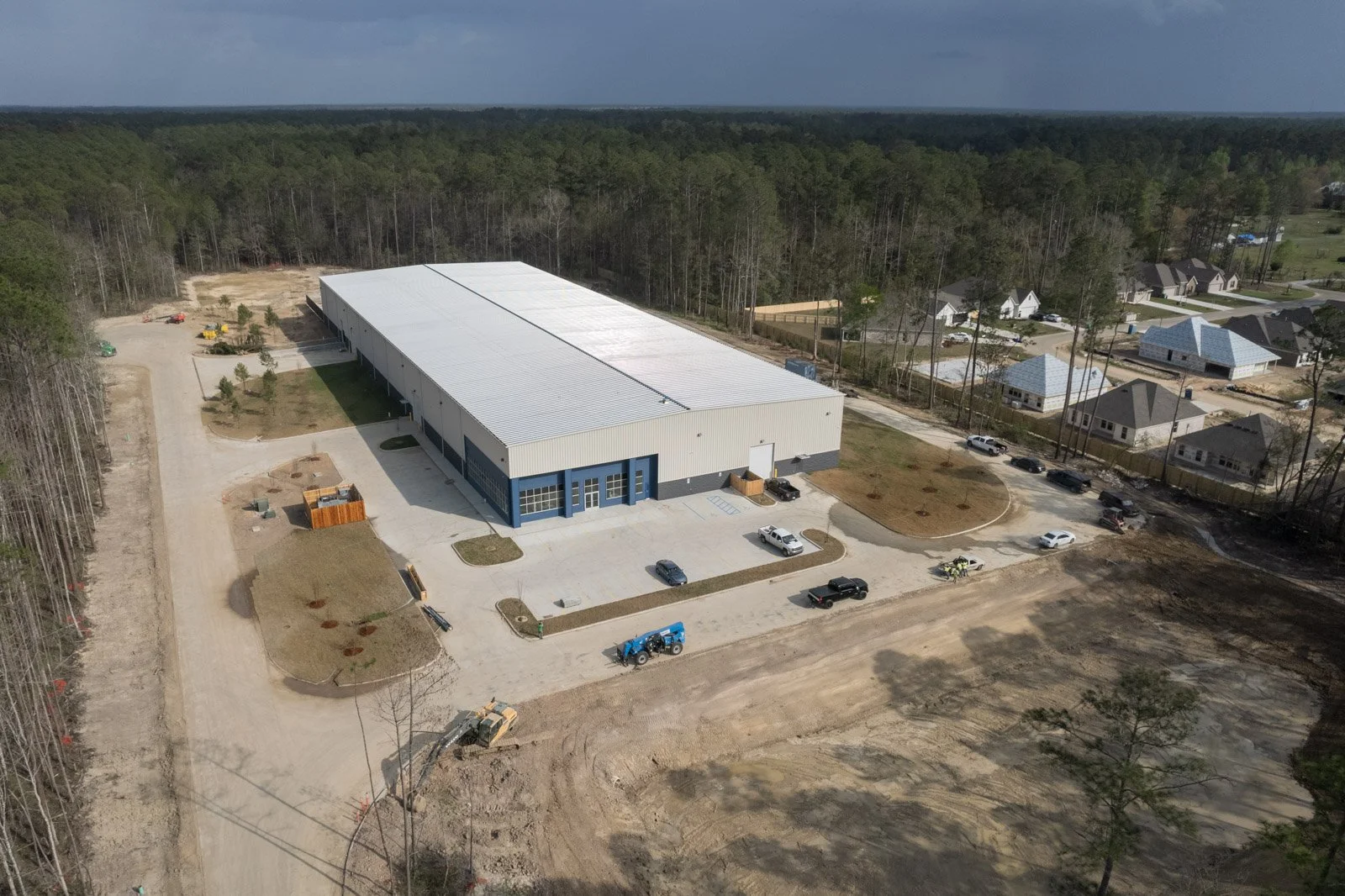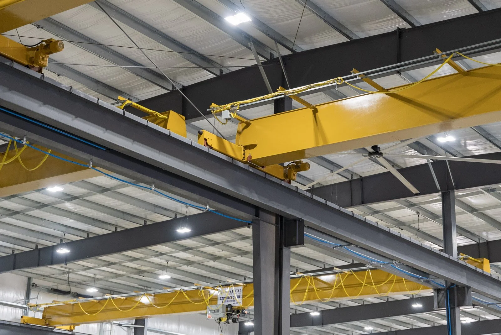To support the drive-through lanes, the flooring has been reinforced to accommodate the weight of an 18-wheeler truck. Additionally, the central area of the warehouse has been further strengthened to serve as a staging area for equipment. Thanks to the utilization of a Butler building, a remarkable 150 feet wide and 400 feet long space has been created, allowing for the installation of the cranes and their accompanying beams throughout the structure.
