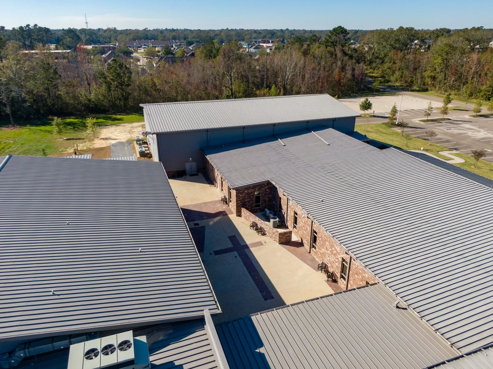 Growth often requires expansion! In 2016, Kent Design Build completed First Baptist Church Denham Springs, a 40 acre, 43,309 sq ft worship facility development. We recently completed an approximately 18,000 sq ft addition to the existing church. The additional space houses children's classrooms, large group children’s worship venues, an expanded lobby, and an outdoor courtyard.