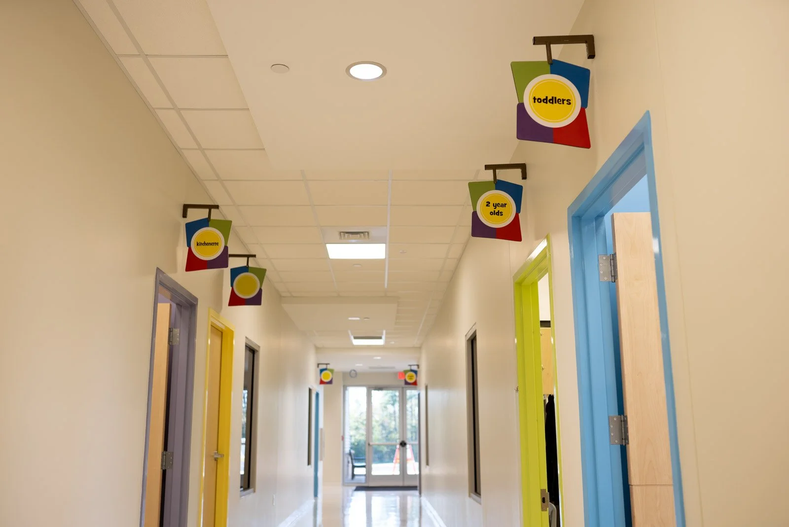 The addition is frequently referred to as the “Children’s Addition” because much of the space is dedicated to space for kids of all ages, investing in the next generation. Right off the main church lobby, there is now a children’s lobby dedicated to a secure check-in. Past the lobby, there are wide hallways to prevent congestion on Sundays. The hallway is lined with one-way windows that allow parents to look inside the classrooms and check on their child, while the child can’t see them. In these classrooms, we considered many functional details required to create effective learning spaces.